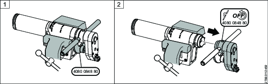 Tenere il mandrino mediante l'unità di comando, utilizzando una morsa e una chiave a tubo regolabile.