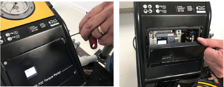 La temperatura dell'olio è troppo bassa: per ovviare a questo problema, rimuovere la chiave dal bullone serrato e posizionarla sul pavimento in modo da farla funzionare liberamente. Commutare la pompa in modalità manuale, impostare la pressione al massimo (690 bar / 10000 psi), quindi far funzionare la chiave in avanti e all'indietro consentendo alla pressione di aumentare al massimo ogni volta. Nota: Possono essere necessari 10-15 minuti di ciclo manuale a seconda delle condizioni ambientali. Dopo l'aumento della temperatura dell'olio, passare alla modalità automatica, impostare la pressione di esercizio, eseguire il ciclo di apprendimento ed eseguire il serraggio in modalità automatica.
