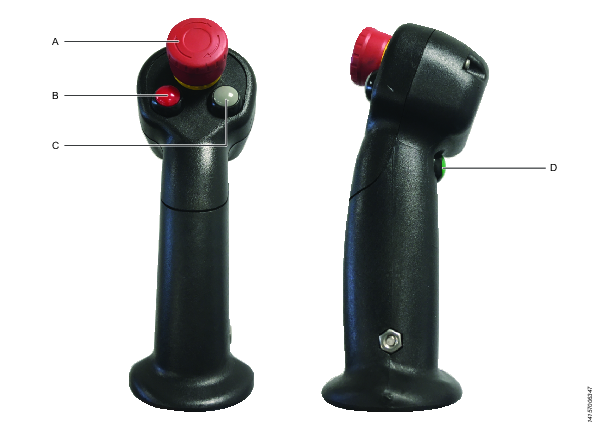 Viene premuto il pulsante di emergenza nell'impugnatura di controllo. Per rilasciare girarlo in senso orario.