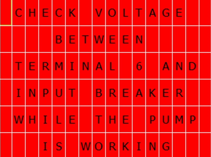 Se ci sono 5 allarmi di errore di alimentazione in meno di 5 minuti, il display mostra il seguente messaggio per 5 minuti. Prima di lavorare, controllare la tensione tra il terminale 6 e l'interruttore di ingresso.