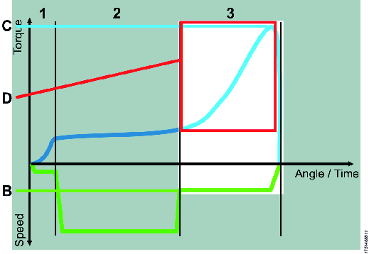具有扭矩和角度控制的多步骤螺丝拧紧程序。