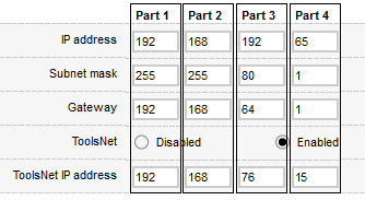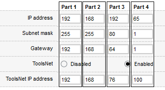 S | TN 显示控制器是否连接到 ToolsNet 8。 |