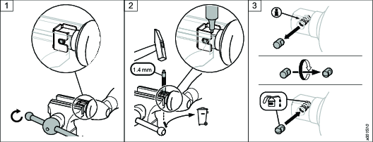 Chassez la goupille d'arrêt à la main avec le chasse-goupille de 1,4 mm ( (4080 0333 00)). Le cas échéant, tapez doucement sur le chasse-goupille à l'aide d'un petit marteau.