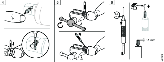 Reculez le manchon du chasse-goupille de 1,8 mm (4080 0334 00). Placez une nouvelle goupille dans l'orifice du chasse-goupille. La goupille doit rester visible sur 1 mm environ.