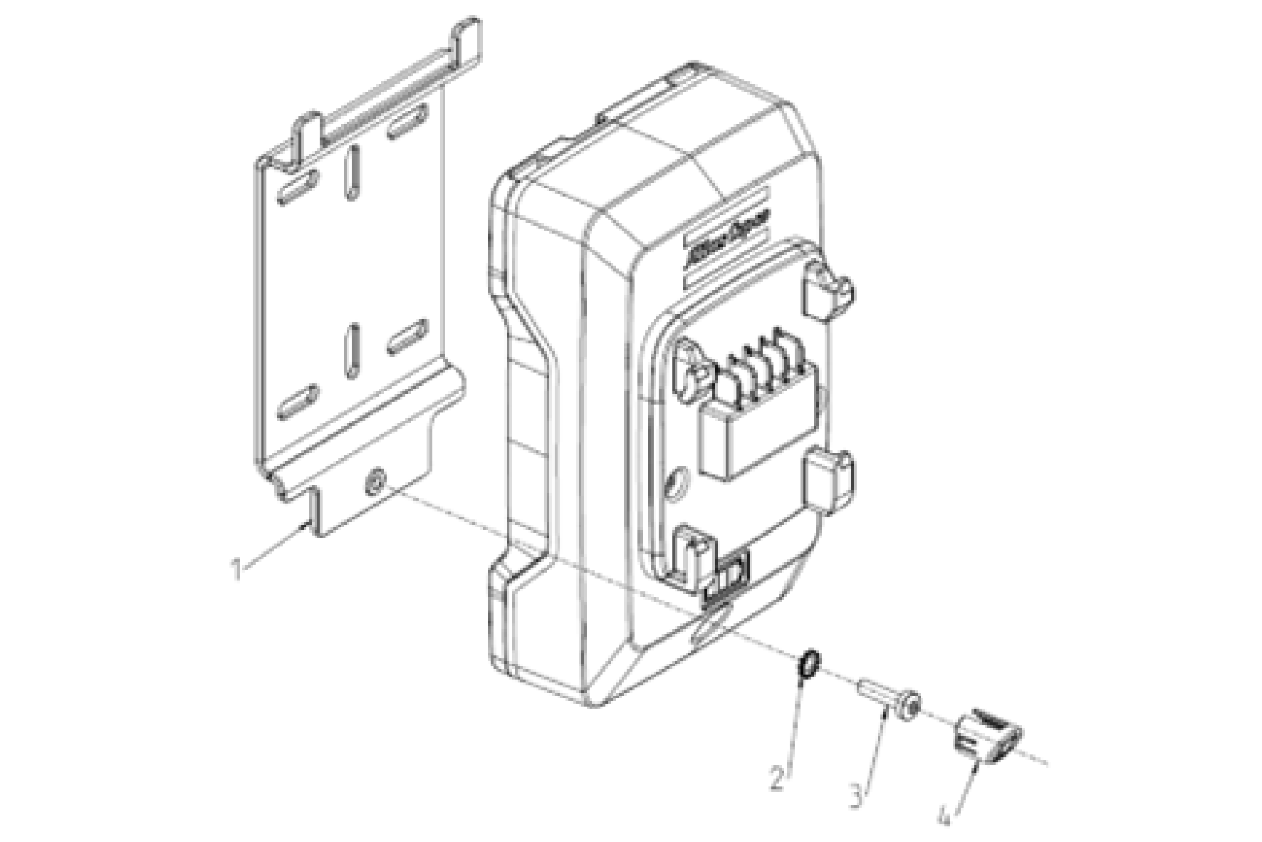 将安装板 (1) 的喇叭滑入 MTRwrench POWER BANK ADAPTOR底部的对应孔位。