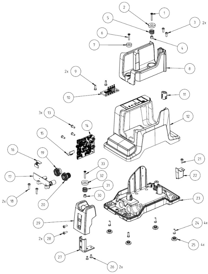 Le MTRwrench cradle est conçu pour être alimenté par le bloc d'alimentation externe réf. n° 4027004802 ou par l'adaptateur pour batterie réf. n° 8439004832z.
