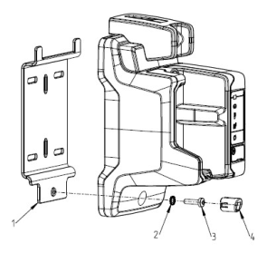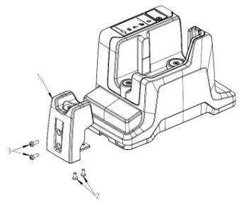 Placer la rondelle (2) et la vis (3) dans le trou et serrer à un couple de 1,5 Nm.