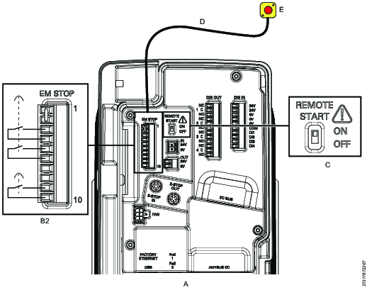 В случае активации дистанционного запуска необходимо внедрить решение для аварийного останова с целью обеспечения безопасности.