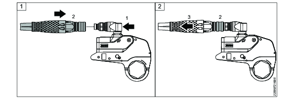 Рекомендуется, чтобы операцией управлял один человек – только обученный и квалифицированный персонал должен осуществлять контроль за эксплуатацией инструмента. Если невозможно избежать управления инструментом двумя лицами, необходимо провести оценку риска с полным учетом окружающей среды, области применения, координации (между операторами) и связи. Оператор, держащий динамометрический ключ, должен управлять операцией, например, человек, осуществляющий управление, необязательно должен держать в руках пульт управления, однако он дает команды включить насос/инструмент.