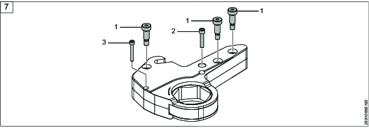 Нанесите Loctite 243 на винты (1), (2), (3) и затяните их моментом, указанным в таблице.