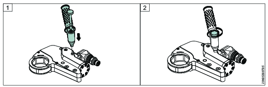 Смажьте обе боковые пластины, приводную пластину, храповик и приводной штифт смазкой Molykote 1000.