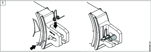 Установите приводной штифт и пружину в приводную пластину и зафиксируйте ее, вставив пружинный штифт.